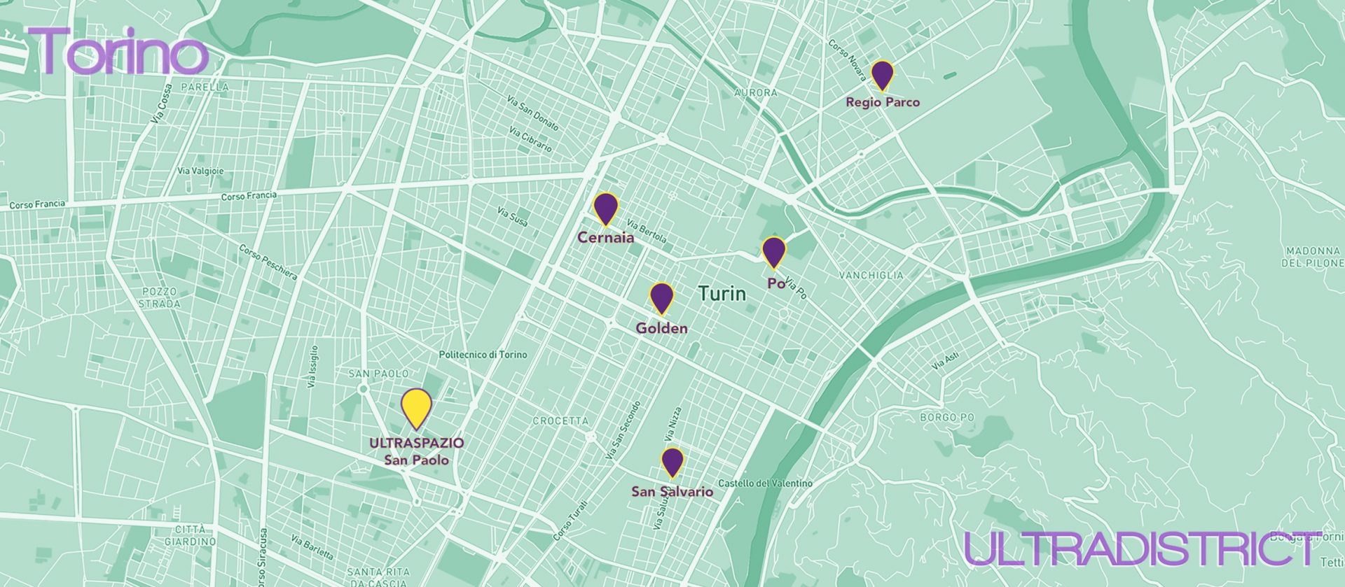 Mappa sedi del coworking diffuso a Torino
